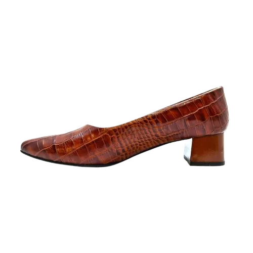 کفش مجلسی پاشنه 3 سانت تمام چرم رنگ عسلی